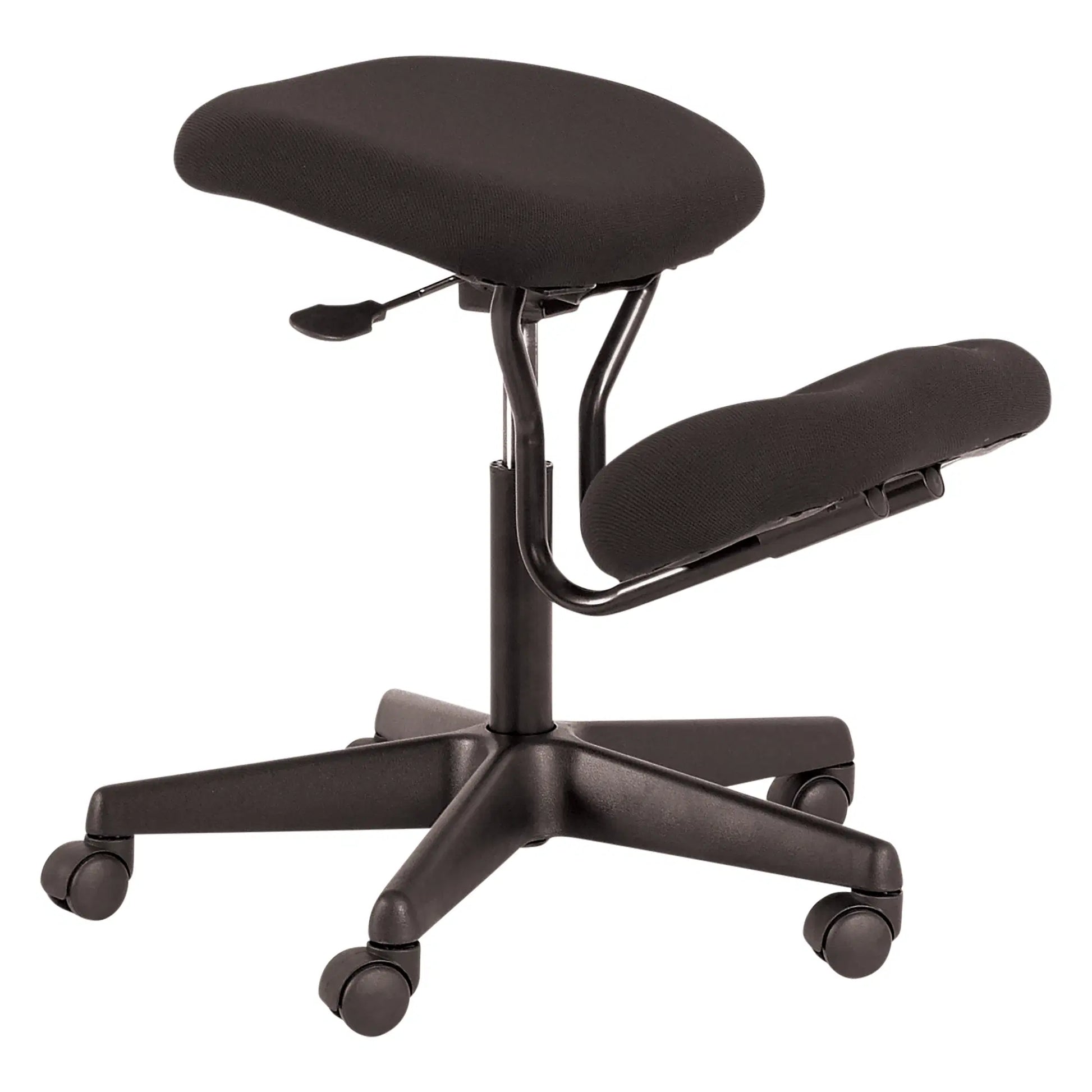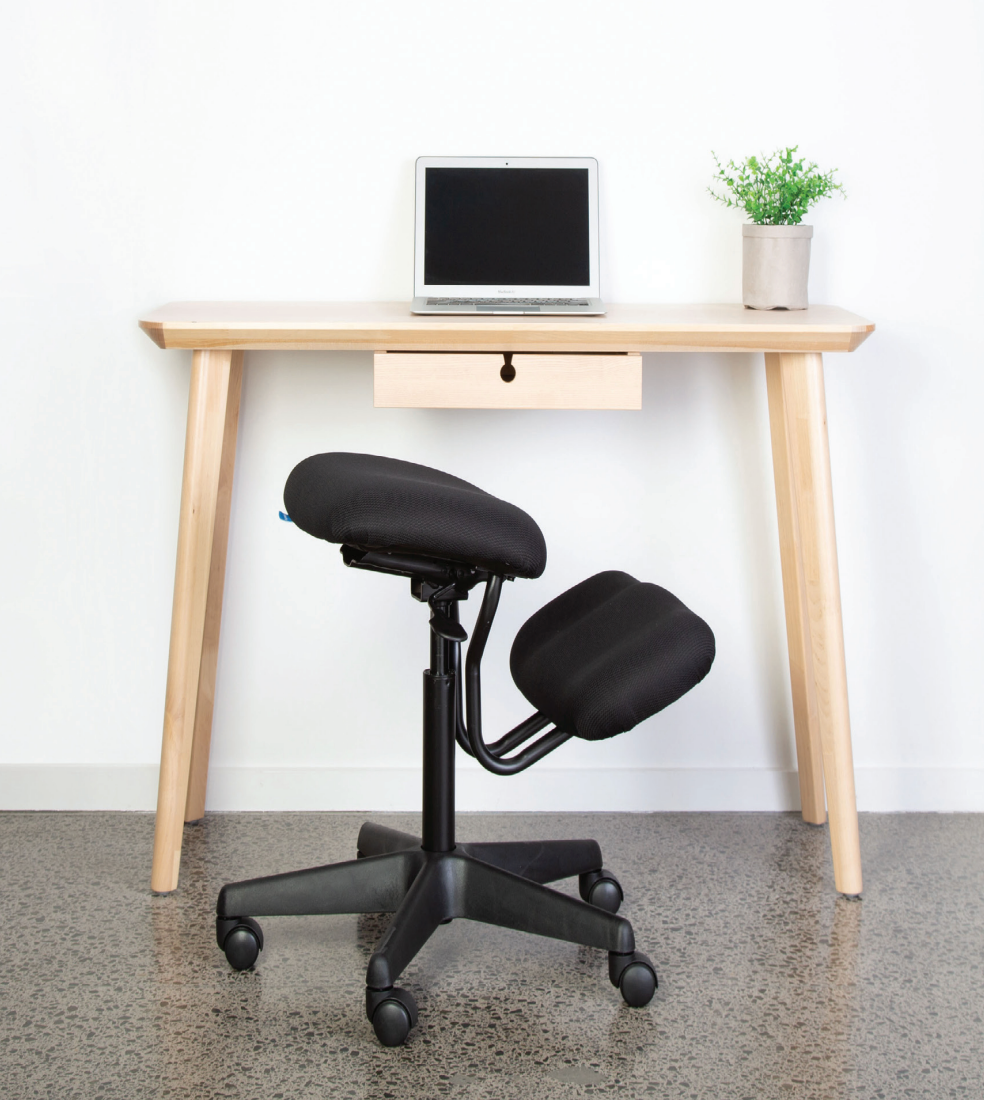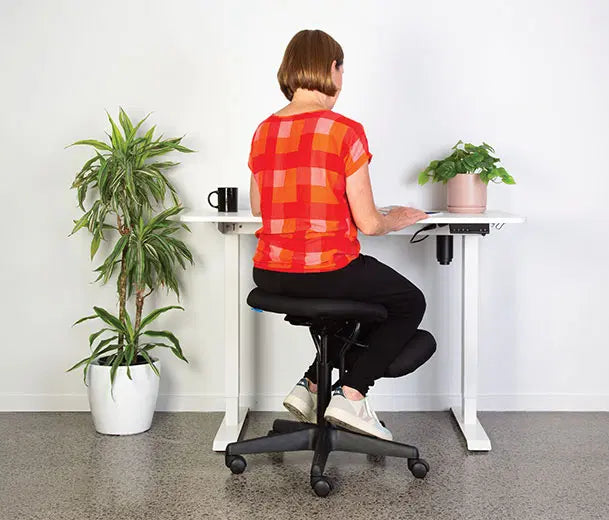 This ergonomic chair features a seat that adjusts your posture by tilting the pelvis, aligning the back, neck, and shoulders to relieve pressure on the lumbar discs. The chair's supportive knee pads foster a balanced position without the need for a backrest, enhancing core strength and reducing spinal compression. Suitable for users up to 130kg and with a 10-year guarantee, the Buro Knee Chair is ideal for anyone looking to improve their seating habits, offering a revolutionary approach to office seating by providing both comfort and health benefits.