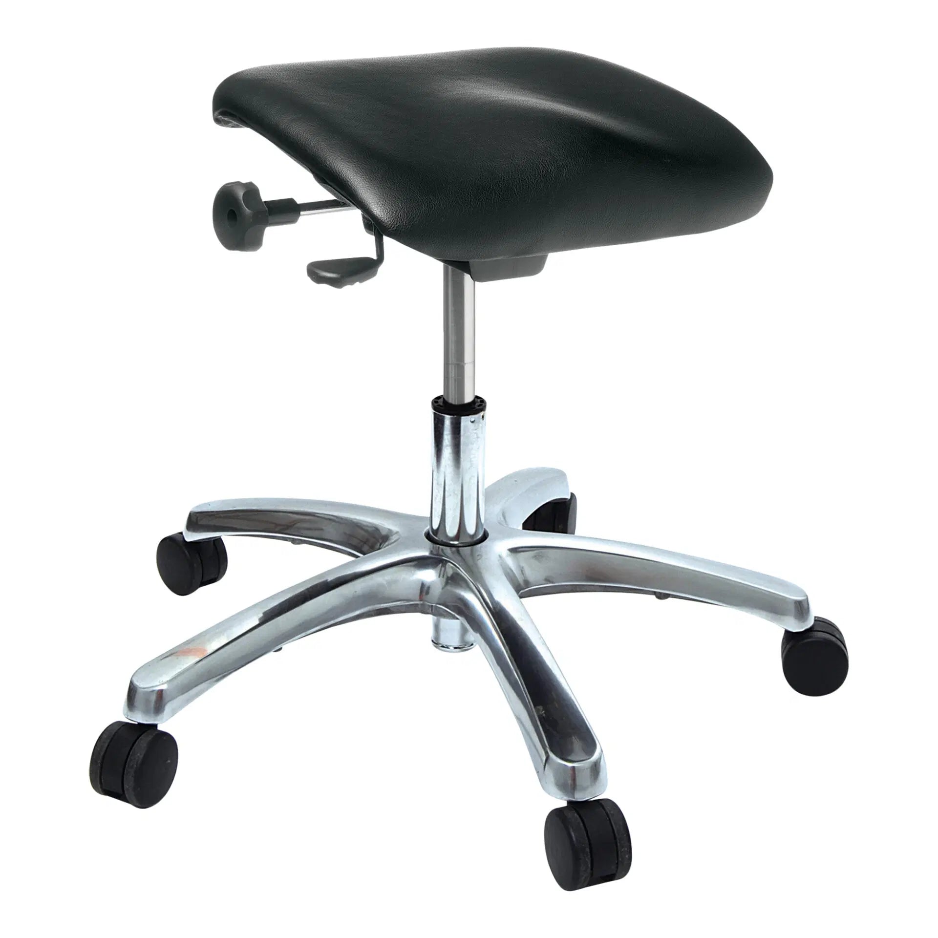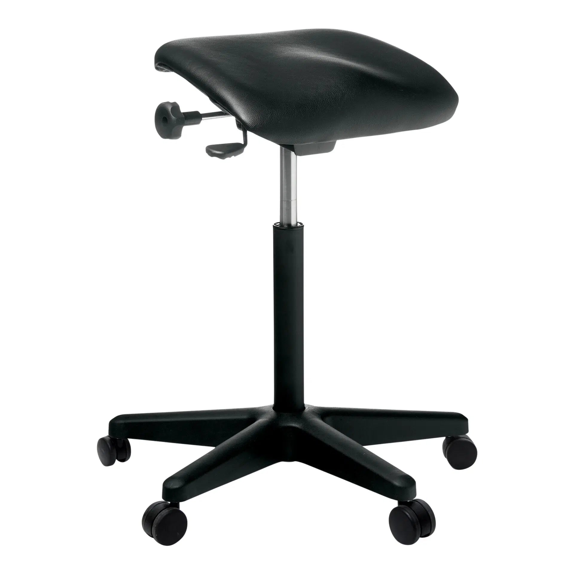 Discover the Buro Posturite, an adjustable-height office stool designed to promote ergonomic seating. With its easy-to-clean vinyl seat, adjustable height, and seat tilt function, it ensures optimal comfort for extended periods.